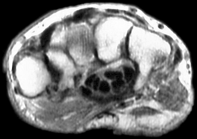 for a small finger flexor tendon rupture in the carpal tunnel. The etiology
